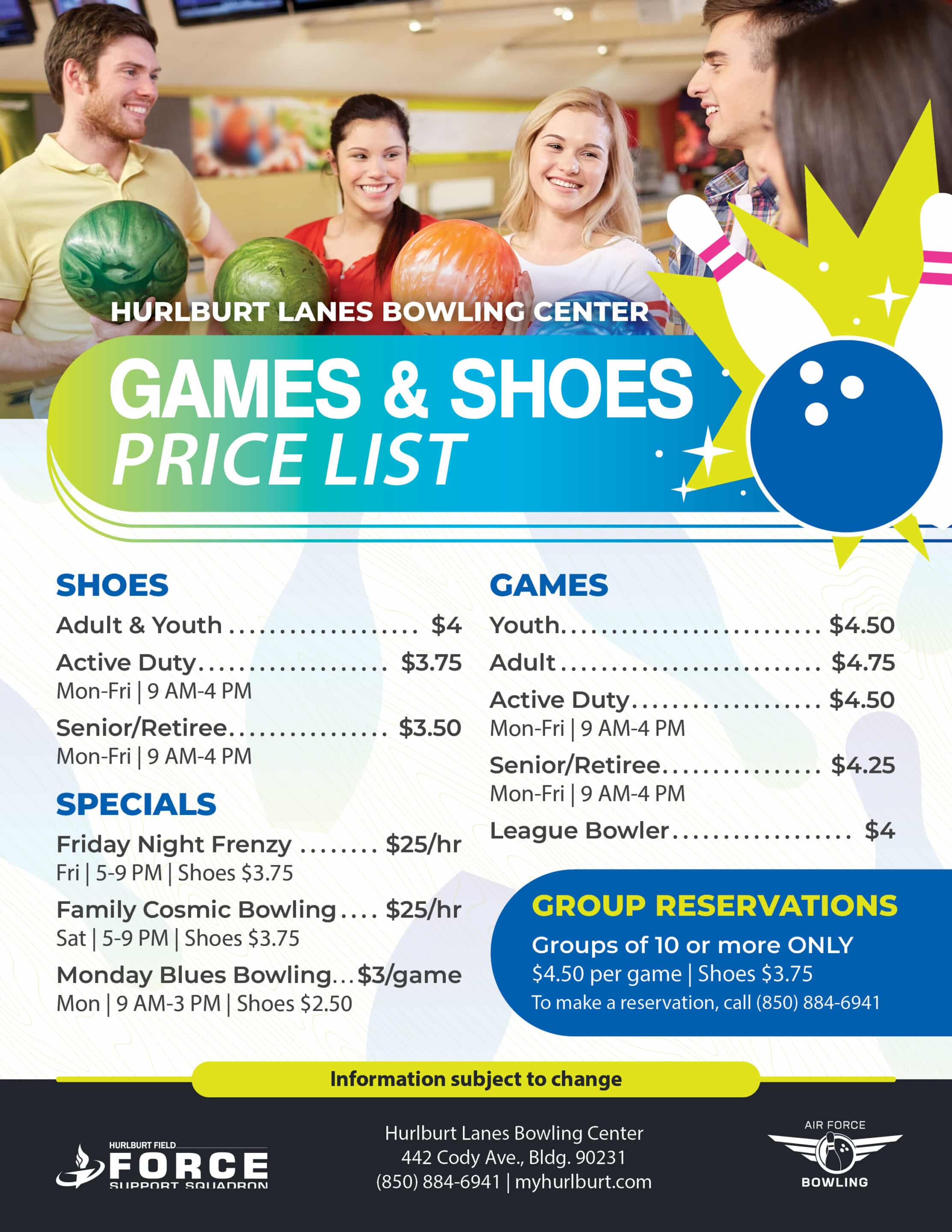 Hurlburt Lanes Bowling Center offers best-in-class bowling and awesome fun-featuring 12 lanes and an on-site Pro Shop.