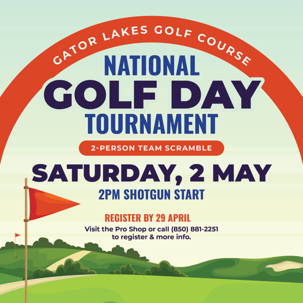 Register at the Pro Shop or call (850) 881-2251 for more information. Donโt miss your shot to team up and tee off!